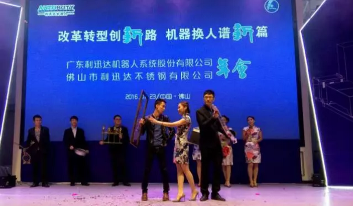 2016年1月23日晚7点,利迅达机器人在华盈酒店隆重举行了一场别开生面的喜庆年会。年会以“改革转型创新路 机器换人谱新篇”为主题,表达了公司领导与员工携手开创全新格局的锐意进取精神。公司董事长霍锦添与高层管理团队、供应商伙伴、公司600多名员工及其家属欢聚一堂,辞旧迎新,畅想新年。