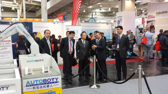 4月25日,备受瞩目的全球Top级工业技术盛会“2016汉诺威工业博览会”隆重开幕!中国驻德公使李晓驷在佛山市委常委、顺德区委书记区邦敏的陪同下视察利迅达机器人展位,助阵中国智造!上海ABB总裁李刚、广东省汽车行业协会等企事业的领导专家先后莅临参观指导。官方微信:AUTOBOTY