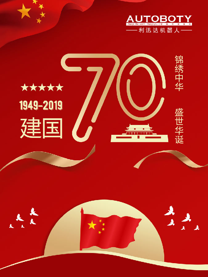 我们即将迎来祖国成立70周年纪念日。70年披荆斩棘,70年风雨兼程,短短的几十年,中国创造了一个又一个举世瞩目的奇迹。作为中华儿女,我们感到无比的骄傲和自豪,在此广东利迅达机器人系统股份有限公司全体员工祝愿伟大的祖国永远繁荣昌盛,欣欣向荣!为庆祝中华人民共和国成立70周年利迅达在厂区内挂上了五星红旗,一抹抹红在蓝天的映衬下迎风飘扬。在国庆如此重要的日子里,除了祝福我们的祖国生日快乐以外,更要提醒各位朋友们出行要注意安全。(不出门就一起在家看阅兵啊!)