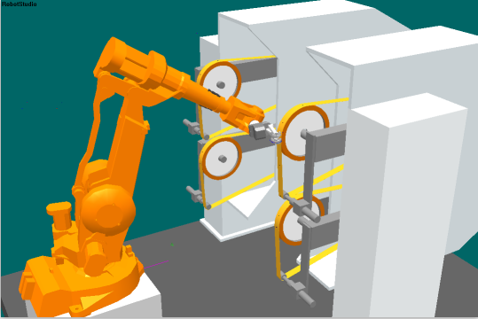 机器人采用IRC5控制器,触摸屏加摇杆示教器,操作简单方便;